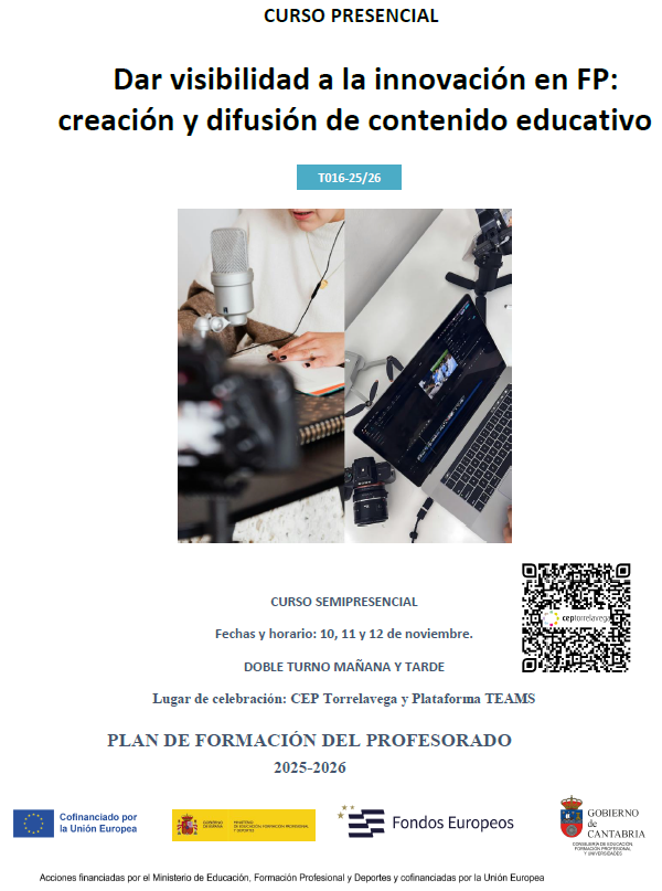 - Destinatarios: Docentes de Educación Primaria y Educación Secundaria en activo de la Comunidad Autónoma de Cantabria