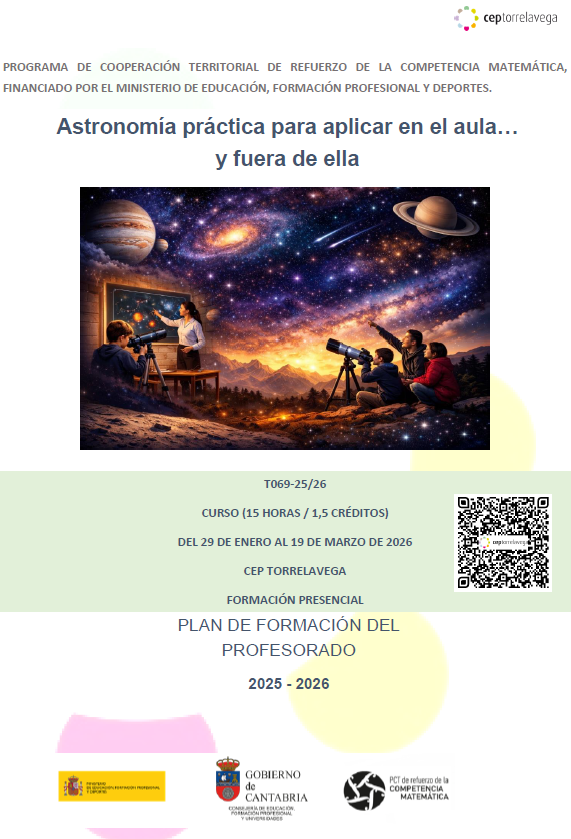- Destinatarios: Docentes de Educación Primaria y Educación Secundaria en activo de la Comunidad Autónoma de Cantabria