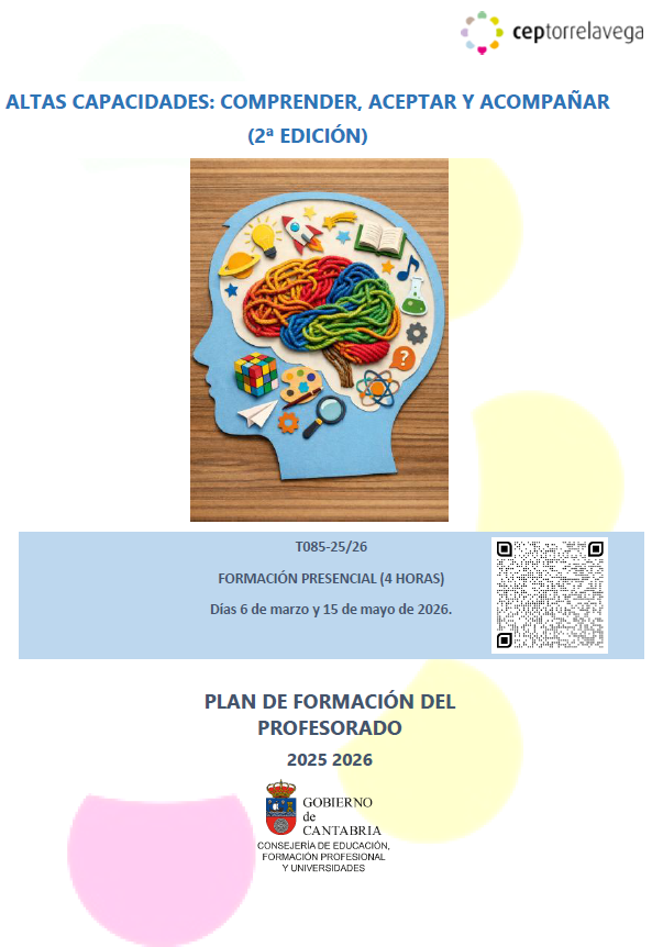 - Destinatarios: Profesorado en activo de Cantabria en el presente curso 25-26 que no hayan realizado esta formación en ediciones anteriores.